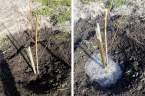 След засаждане ще за почне възстановителен процес на кореновите власинки, част от които се били увредени при изваждането на посадъчния материал. Пълноценното възстановяване зависи от допира с почвата и наличието на достатъчно почвена влага. Нормално е поради валежите през есента и зимата почвата да се сляга уплътнява, което е полезно за възстановителния процес. Това не изключва поливането на растенията веднага след засаждането. След определено време може да се наложи досипване на почва в т. нар. околостъблена чаша. В нея при есенно засаждане може да бъде внесен фосфорен тор, защото фосфорът е полезен за коренообразуването.