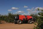 Въздушната вентилаторна пръскачка на машината разполага с резервоар от 2000 литра, помпа с капацитет 160 литра в минута и 26 двойни дюзи, осигуряващи висок обем покритие с намалено отклонение на разпръскване. Интегрираната технология H3O автоматично регулира дозировката чрез ултразвуково разпознаване на дърветата, намалявайки употребата на пестициди с до 25% и отклонението на разпръскването с 48%.