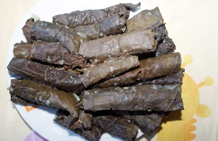 Продукти: около 40 лозови листа, 100 г леща, 200 г ориз, 1 глава лук, магданоз, джоджен, 3-4 домата, 5-6 картофа, ябълков оцет, 3 с. л. олио, бахар, черен пипер, сол.