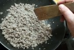 Продукти за 5 порции: 500 г спагети, 500 г кайма, 200 г сварен зрял фасул, 1 голяма глава лук, 3-4 скилидки чесън, 1 зелена пиперка, 1 червена пиперка, 1 люта чушка, 3-4 с.л. зехтин, 3 с.л. доматено пюре, 1 ч.л. лют червен пипер, 1 ч.л. сушен риган, 1 ч.л. смлян кимион, 1 дафинов лист, сол.