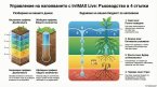 - Синя зона: Преовлажняване. Водата и хранителните вещества се оттичат под активната коренова зона или се изпаряват от повърхността.