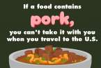Пътниците не могат да носят със себе си прясно или замразено свинско месо или свински продукти, ако те не са преработени в съответствие с изискванията на Министерството на земеделието на САЩ (USDA).