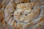 Разбъркваме маята в 50 мл топла вода, добавяме останалите продукти и омесваме меко тесто. Не чакаме тестото да втасва, а веднага разточваме кори. Първата кора намазваме с разтопена мас, разточваме втората кора и я слагаме върху първата, намазваме я с мазнина и поръсваме натрошено сирене. Навиваме корите на руло и усукваме с ръце като въже. В намазана с мас тава навиваме рехаво рулото и оставяме да втаса. Печем до зачервяване в умерена фурна.