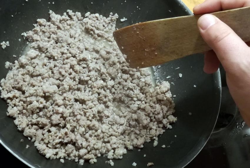 Нарязваме лука на ситно и го запържваме в сгорещения зехтин. Щом стане златист, прибавяме каймата и пържим още 5-6 мин на силен огън, като разрохваме с лъжица така, че каймата да... Прочети повече »